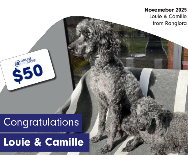 Winners are notified by email, or phone and are required to supply a picture & name of their pet which will be used for promotional purposes, a voucher code is then supplied which qualifies them to receive $50 off their next purchase.